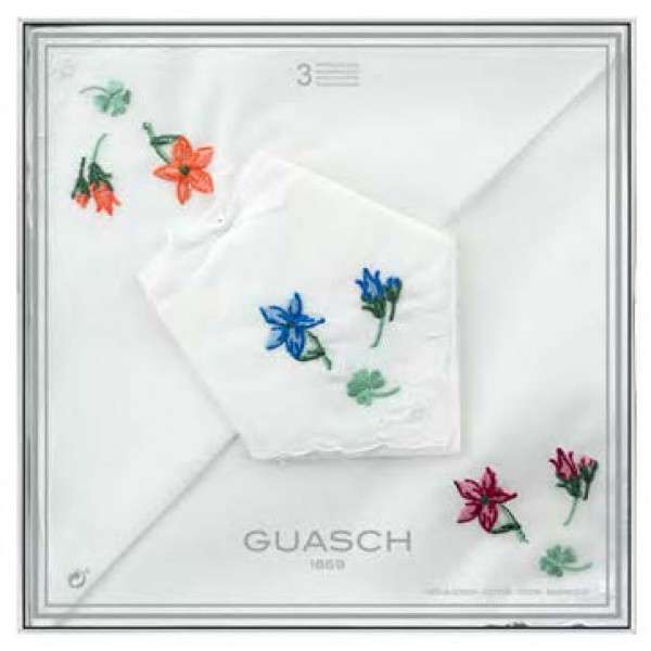 Вишукана жіноча носова хустинка невід'ємний атрибут жіночого гардеробу, вона виконує гігієнічну і декоративну функції. Якісною бавовняною носовою хустинкою буде приємно поправити макіяж протягом дня або витерти крапельки поту з обличчя. Жіночі носові хустинки Guasch Samoa-08 з красивою вишивкою дуже якісні, не викликають роздратування, не втрачають форму і колір після численних прань. Бавовняні носові хустинки з вишивкою свідчать про тонкий смак господині і її бездоганний стиль. Набір жіночих носових хустинок Guasch Samoa-08 на подарунок порадує жінку на День Народження, Новий Рік, 8 березня. Носові хустинки упаковані в елегантну фірмову коробочку.